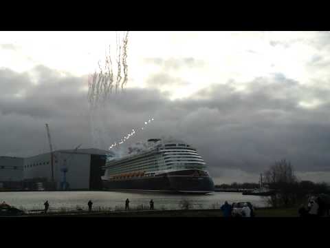- The latest Disney Cruise ship floated out of its construction shed at the Meyer-Werft yard in Germany. The ship will be launched on March 31 is 1,115-feet in length with 1,250 staterooms and suites and can hold 4,000 passengers. The ship features Magical Portholes.